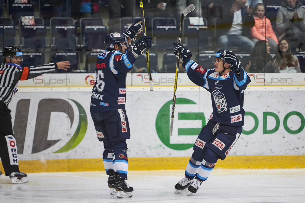 Při hře tři na tři se brzy do šance dostali Ordoš s Kvapilem, Pavelka ale udržel puk před čárou. Vzápětí Tygři ubránili oslabení tři proti čtyřem a šlo se do nájezdů. V nich se postupně prosadili Marek Kvapil a Tyler Redenbach, jehož zásah byl nakonec rozhodující. Bílí Tygři si tak ze strhující bitvy s Hradcem odnesli dva body.